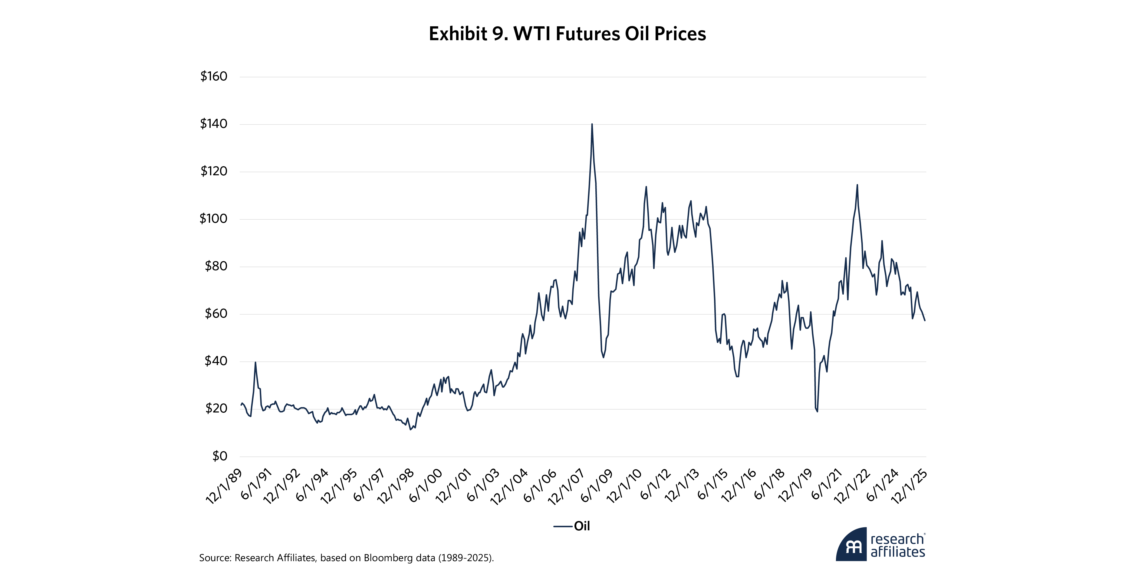 The oil and housing markets also flashed important inflation signals. While headline inflation remains sticky, oil stayed weak throughout the year. Exhibit 9 shows supply has outweighed demand, putting downward pressure on prices. OPEC+ countries have ramped up their production targets to gain market share from the U.S. shale patch, which has higher production costs. Recent OPEC+ statements have reduced 2026 supply expectations, adding yet another potential tailwind to 2026 inflation (El Wardany, et al., 2025) as producers look to push prices out of the fifties.